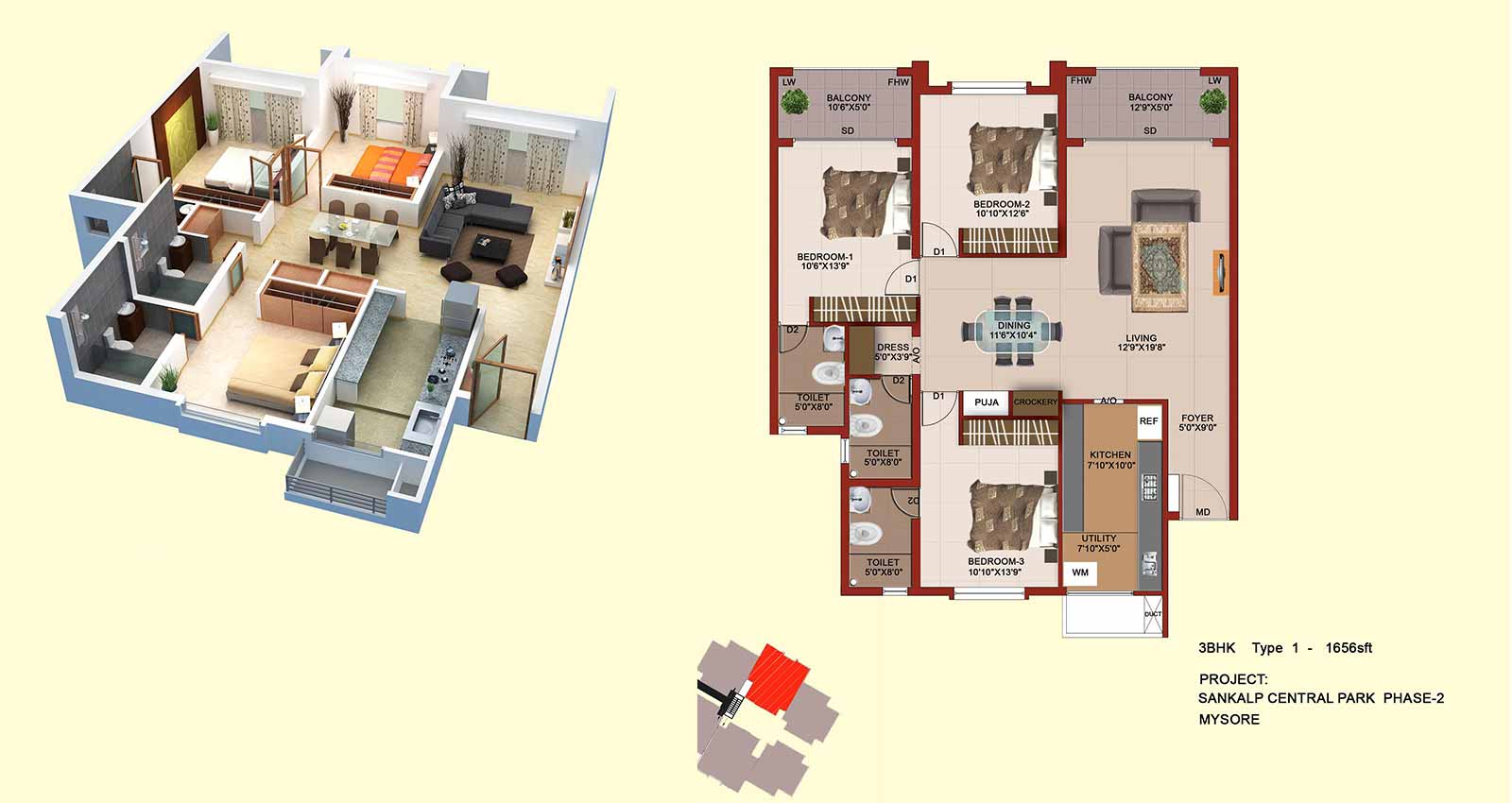 - 3 BHK Type 1 – 1656sft