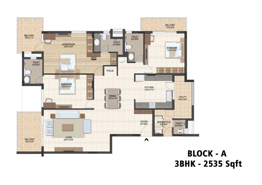 - Block-A 3BHK 2535 Sft